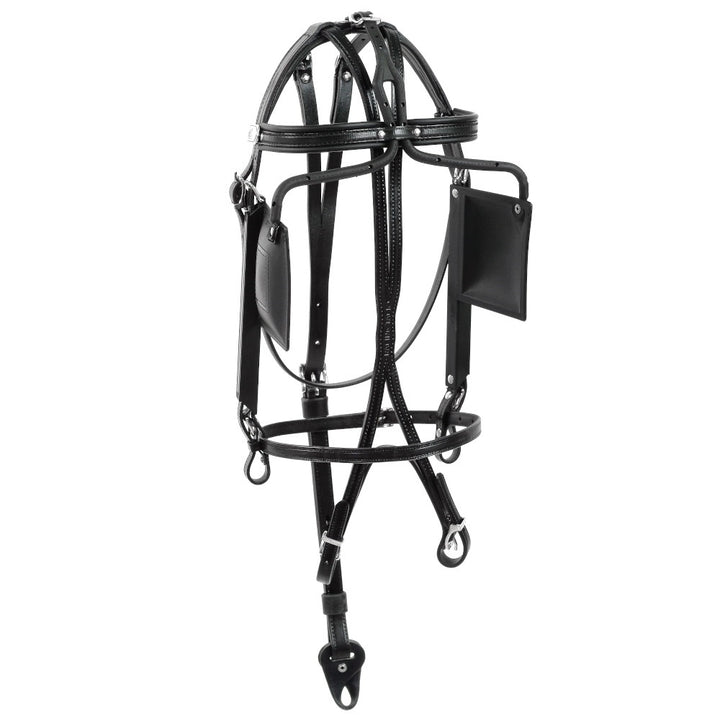 Briglia con paraocchi quadri in cuoio, qualità superiore, completa di freno.
