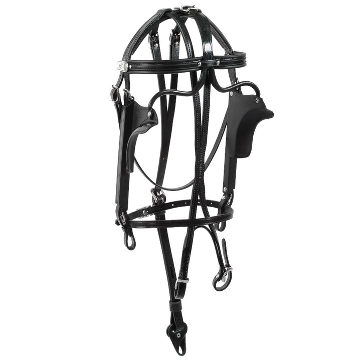 Briglia con paraocchi alla russa in cuoio, qualità superiore, completa di freno.