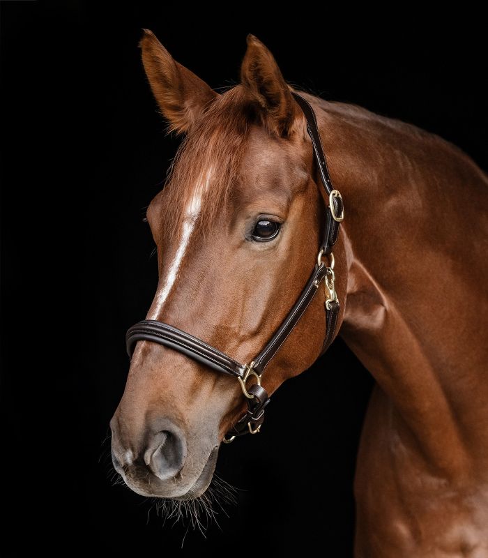 Elegante capezza in cuoio con morbida imbottitura al sovracapo e alla capezzina.