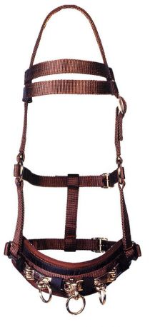 Cavezzone da doma in nylon con imbottiture in neoprene e fibbie inox.