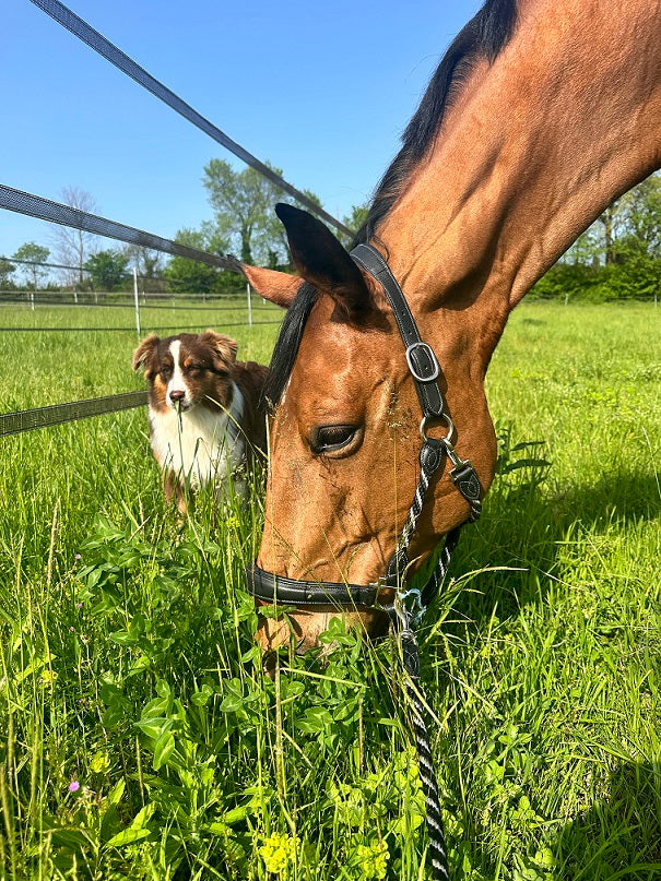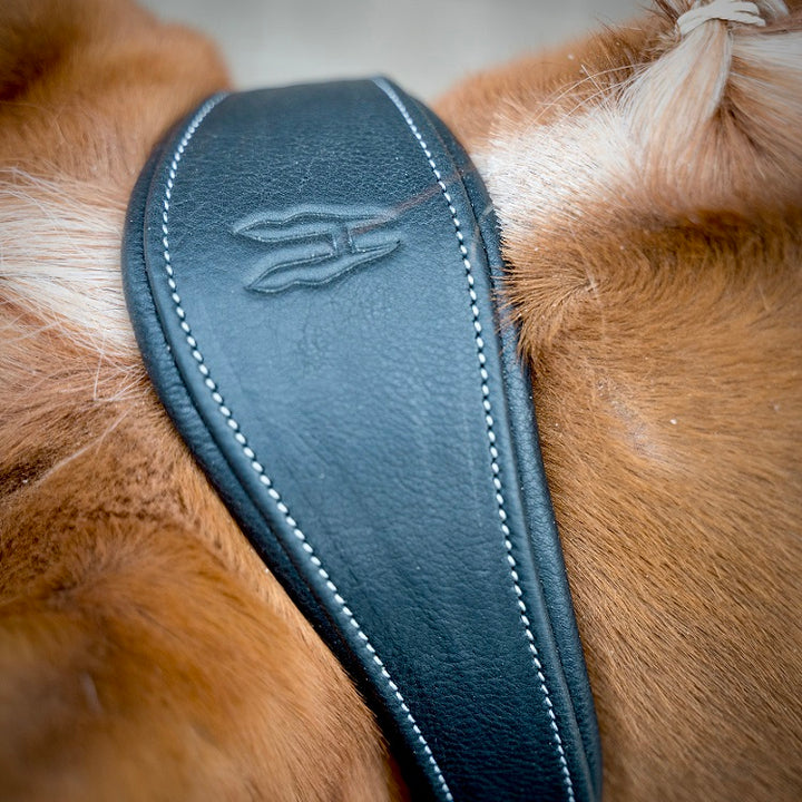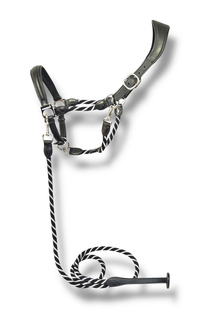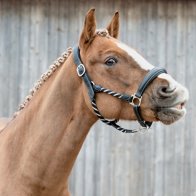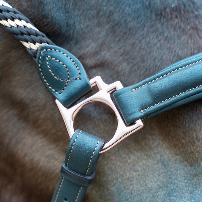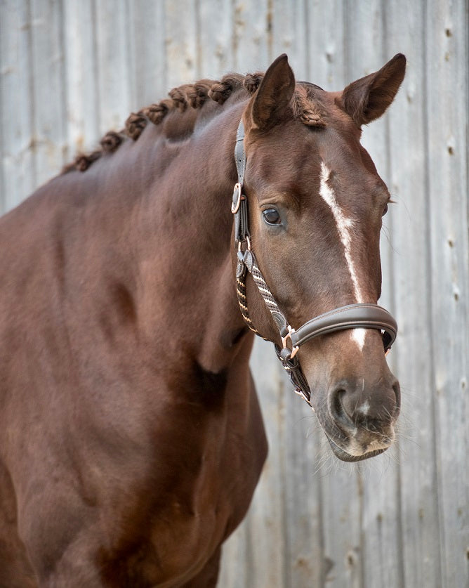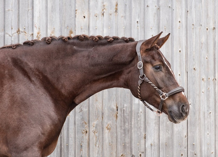 La cavezza anatomica in pelle Horsena con lunghina in lurex progettata per garantire comfort e sicurezza durante la gestione del cavallo. Realizzata con pelle di alta qualità, si adatta perfettamente alla conformazione del muso, riducendo i punti di pressione. La lunghina inclusa facilita il controllo e la conduzione, rendendo questo prodotto ideale per un uso professionale e quotidiano.