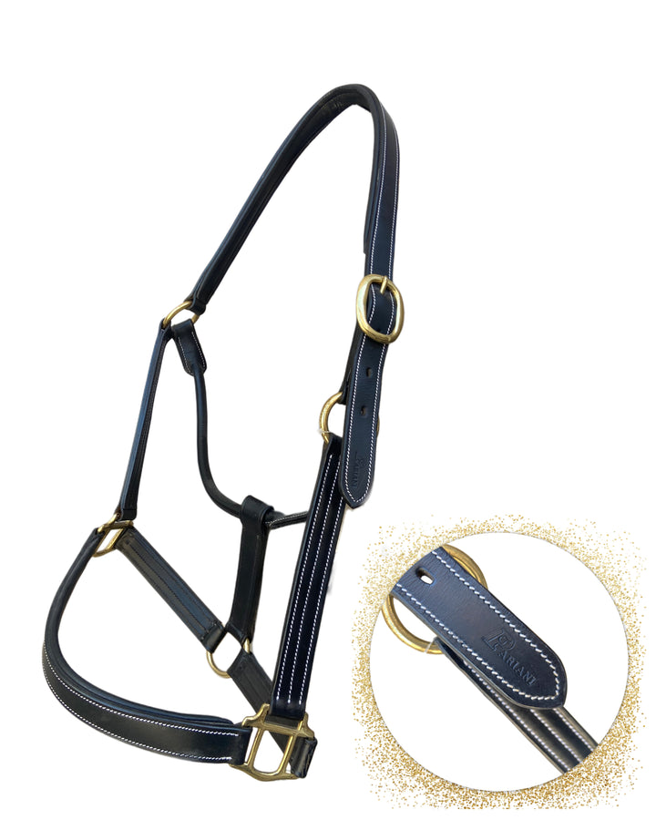 Cavezza in cuoio Pariani nera con cuciture a contrasto