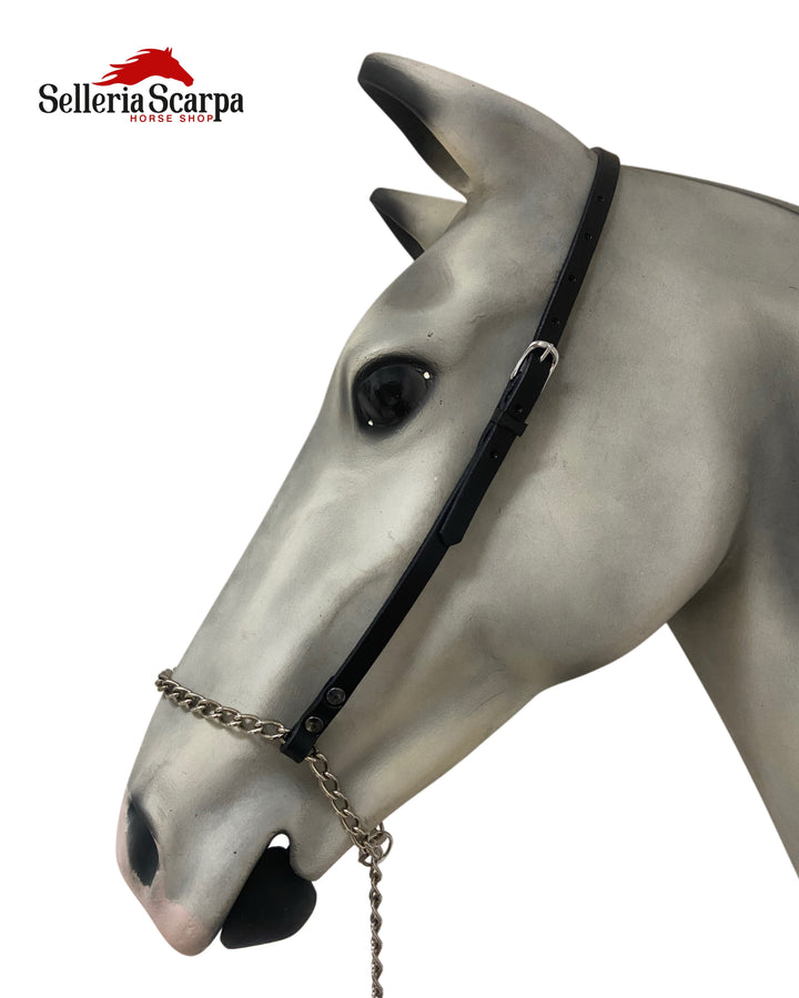 Cavezzino in cuoio e catena regolabile da addestramento.