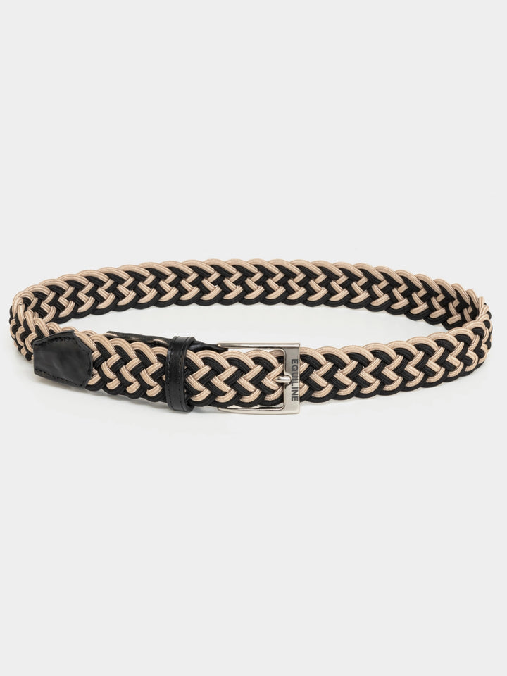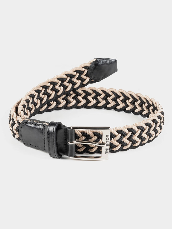 Migliora il tuo completo da equitazione con questa cintura elastica intrecciata unisex. Realizzata in materiale elasticizzato bicolore, unisce stile e funzionalità. La fibbia argentata personalizzata aggiunge eleganza.