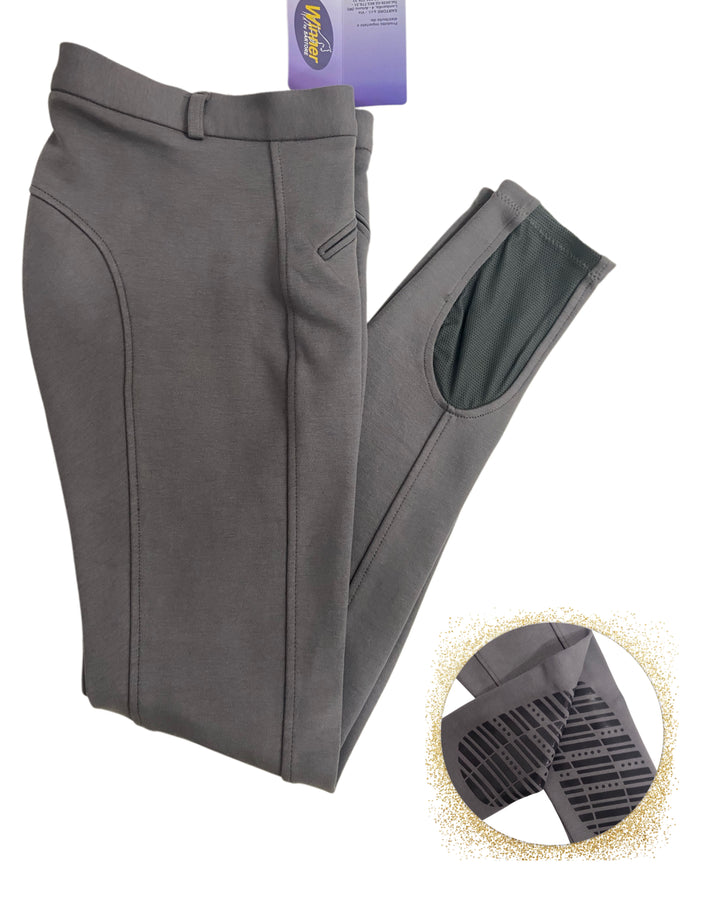 Pantaloni Junior Winner, colore grigio con grip ginocchio, tessuto elastico