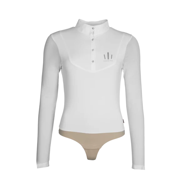 La camiciabody da gara offre un'innovativa rivisitazione della tradizionale maglia da concorso, ideale per le giornate estive. È progettato per essere eccezionalmente traspirante, grazie al tessuto a rete che regola la temperatura corporea, garantendoti freschezza anche nelle giornate più calde. Grazie alle sue proprietà antibatteriche, antiodore e ad asciugatura rapida, rimarrai fresco e pronto a dare spettacolo. Il suo design offre un look senza cuciture, senza segni visibili sotto i pantaloni. Il fondo del bodystocking presenta un perizoma per una silhouette impeccabile, senza segni visibili. La comoda chiusura frontale a 6 bottoni consente di indossare il capo senza sforzo, senza rinunciare a acconciatura e trucco. I 4 bottoni superiori sono impreziositi da cristalli Swarovski® per un lussuoso dettaglio finale.