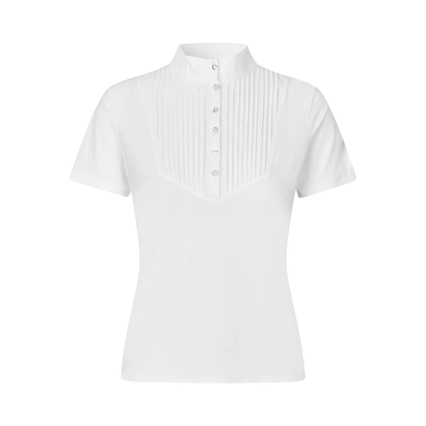 Una rivisitazione moderna di una tradizionale ed elegante camicia da concorso, con una comoda chiusura frontale a 6 bottoni per un look semplice e senza rinunciare a acconciatura e trucco. Questa camicia da concorso è eccezionalmente traspirante e perfetta per le gare estive, garantendoti comfort e un look impeccabile. Il tessuto regola attivamente la temperatura corporea, mantenendoti fresco indipendentemente da quanto siano calde le giornate. Questa camicia da concorso si adatta perfettamente sotto la giacca da concorso, evitando la formazione di pieghe e donandoti un look impeccabile. Il tessuto elasticizzato in 4 direzioni della camicia ti consente di muoverti liberamente in sella senza alcuna restrizione. Le sue proprietà antibatteriche e antiodore ti mantengono fresco, comodo e pronto per il ring. L'eleganza di questa camicia è accentuata dai 4 bottoni superiori della chiusura impreziositi da cristalli Swarovski®.