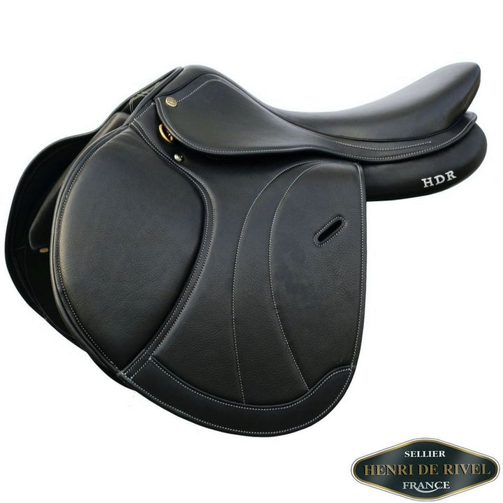 Sella HENRI DE RIVEL modello UNIVERSAL da salto doppiata in cuoio con archetto intercambiabile (art. 47196) e chiave per smontarla.