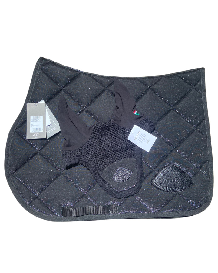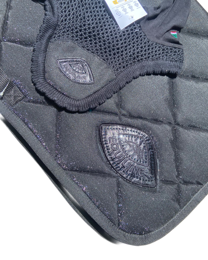 Questo set Equiline comprende un sottosella e una cuffia abbinati, realizzati in tessuto lurex con motivo a rombo. Il design elegante e la qualità dei materiali assicurano comfort e resistenza durante l’attività equestre, offrendo al cavallo una protezione ottimale e uno stile raffinato. Ideale per chi cerca funzionalità e un tocco di classe nelle proprie attrezzature.