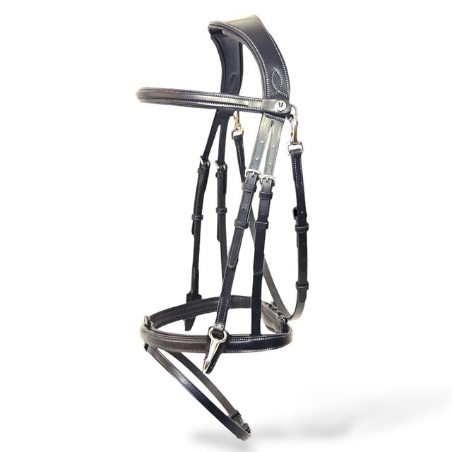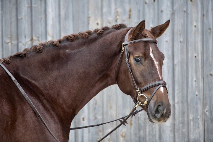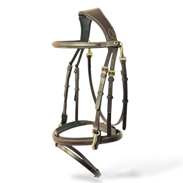 La testiera anatomica in cuoio "WORK" Horsena con redini HR10502 unisce design ergonomico e materiali di alta qualità per garantire comfort e controllo ottimali durante la monta. Realizzata in cuoio resistente e rifinita con cura artigianale, assicura una perfetta adattabilità alla conformazione del cavallo, riducendo la pressione e migliorando la comunicazione tra cavaliere e animale. Le redini incluse completano l’insieme, offrendo una presa sicura e una gestione precisa. Ideale per chi cerca funzionalità e durata in un prodotto professionale.